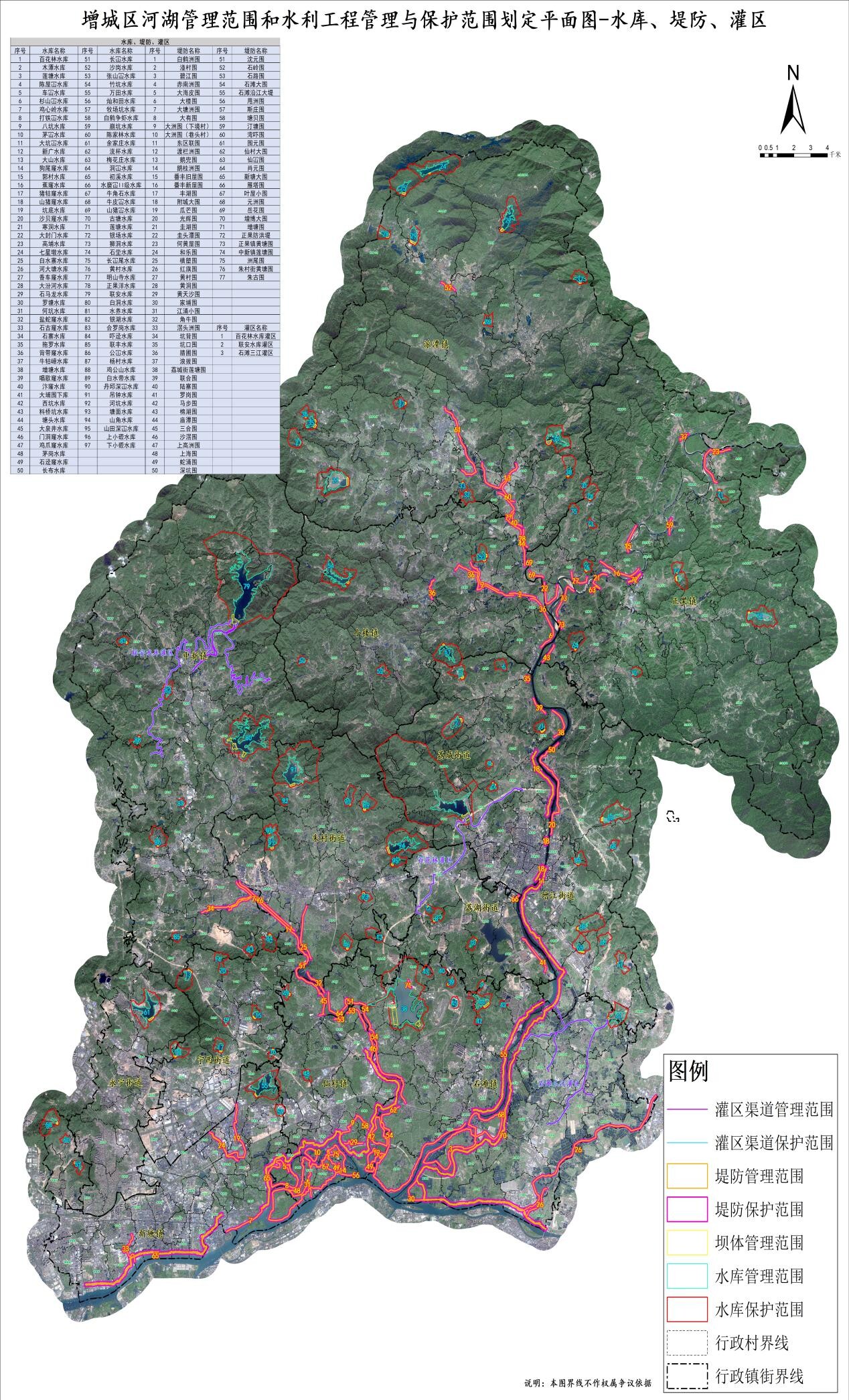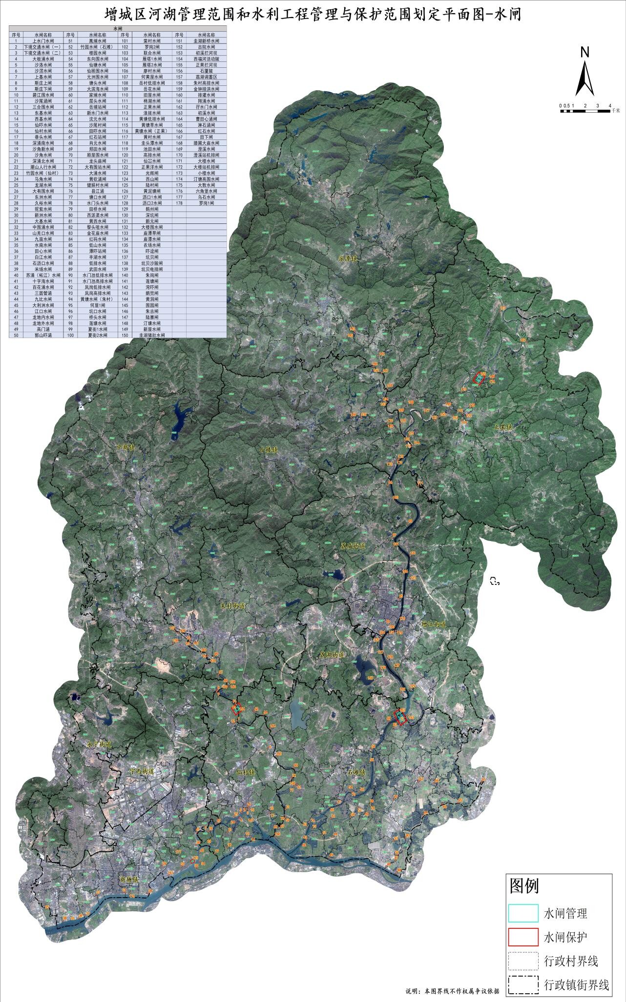 为进一步做好增城区河湖和水利工程管理与保护工作,保障行洪及工程安全,保护河湖生态环境,根据《中华人民共和国水法》《中华人民共和国土地管理法》《中华人民共和国河道管理条例》《水库大坝安全管理条例》和《广东省水利工程管理条例》《广东省河道管理条例》《广州市水务管理条例》等法律法规,以及《广东省河湖管理范围划定技术指引》《广东省水利工程管理与保护范围划定工作指引(试行)》《广州市小型水库安全管理办法》等相关政策文件和工程设计、批复文件等依据,依法开展河湖管理范围和水利工程管理与保护范围划定工作。结合我区实际,现将我区河湖管理范围和水利工程管理与保护范围公告如下: