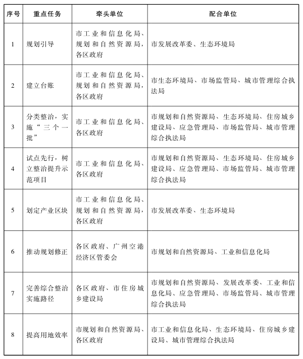 附件:广州市村级工业园整治提升重点工作任务分工表