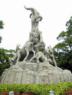Since flowers here blossom all year round, Guangzhou is called "City of Flowers". Guangzhou has other nicknames such as "Yangcheng" (City of Rams) and "Suicheng" (Rice Spike City) and there is a beautiful legend which goes : long, long ago in the Zhou Dynasty, there were five celestials riding five rams with rice spikes in their mouths. The five celestials gave rice spikes to the residents of Guangzhou wishing them a bumper harvest and the banishment of famine for all time. Finally, the celestials flew away and left the five rams who immediately turned into stones. Today, the five rams sculpture at Yuexiu Park is the symbol of Guangzhou.