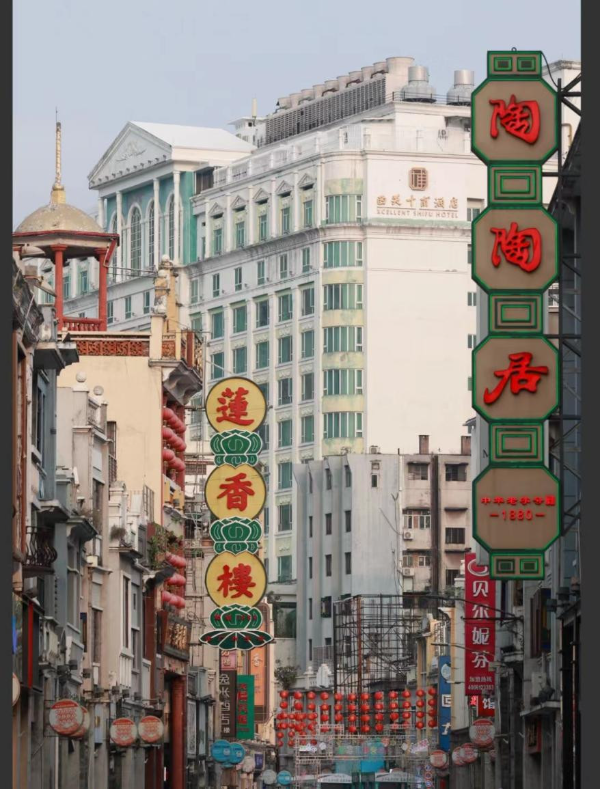 Shangxiajiu, China's first commercial pedestrian street, is located in the central area of Liwan's Xiguan. Housing numerous commercial shops, including renowned brands such as Tao Tao Ju, Lin Heung Tea House, Guangzhou Restaurant, and Huang Shang Huang, the street has was rated earned recognition as one of "China's Top Ten Food and Tourism Streets" in 2023.