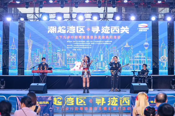 As night fell, the "Guangdong-Hong Kong-Macao Pop Music Night" took the stage at Shangxiajiu Square, featuring Macao's original band "One Way Street" performing their meticulously crafted works, and the locally popular band "B.I.G" presenting local classic songs, captivating the audience and frequently interacting with them. The square echoed with the aspirations of young people to continue traditions and innovate, evoking strong emotional resonance.