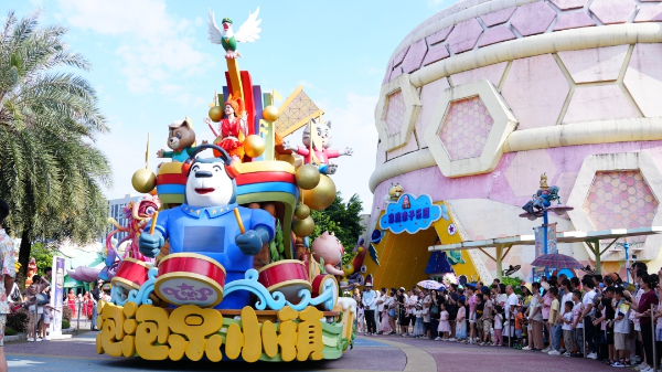 Float parade at the Guangzhou Sunac Land during this year's Mid-Autumn Festival holiday