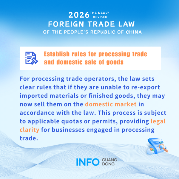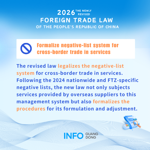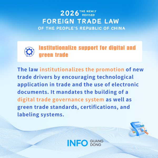 China's newly revised Foreign Trade Law took effect on March 1, 2026, marking the second overhaul of the foundational law governing its foreign trade. Here are some highlights of the newly revised Foreign Trade Law: