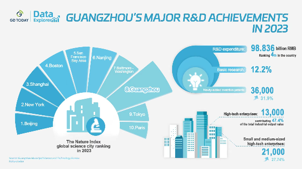 According to the Nature Index global science city 2023 rankings, Guangzhou ranked 8th among the other leading science cities in the world. With a total research and development (R&D) expenditure exceeding 98 billion RMB, it ranked 4th in the country.
