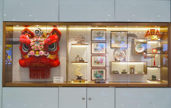 The overall design style of the line stations is themed around intangible cultural heritage, with a selection representative of intangible heritage projects such as Cantonese opera, embroidery, porcelain, lion dance, carving and traditional Chinese medicine.
