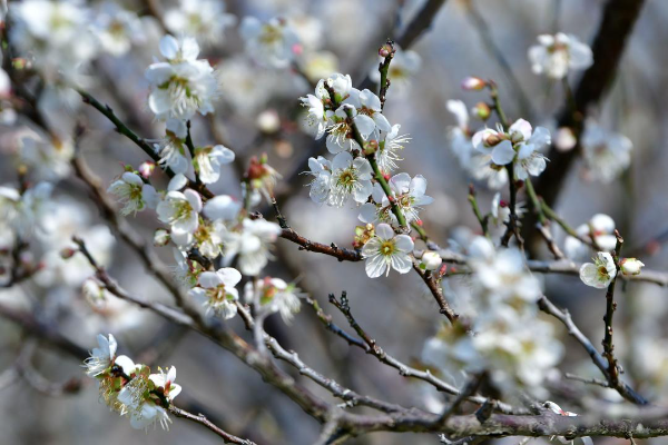 The plum blossoms in the park are entering the initial flowering period now, attracting a crowd of visitors. The plum trees are expected to be in full bloom around January 5, 2025.