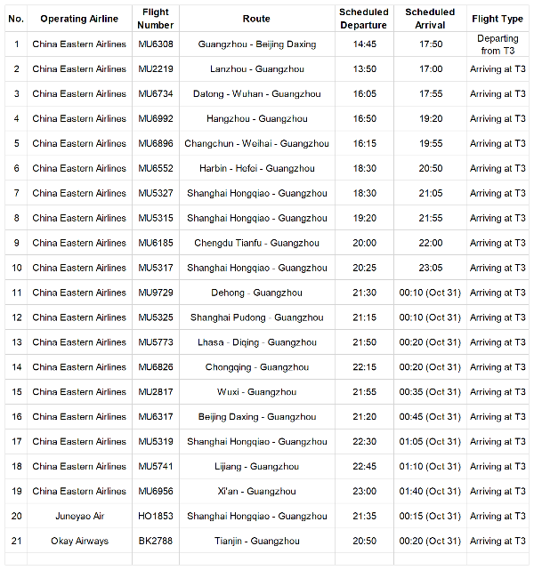 Starting October 30, all long-distance Airport Express bus routes will add a stop at T3. For detailed schedules, check the official "Baiyun Airport Express (白云机场空港快线)" WeChat account.