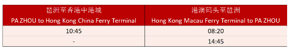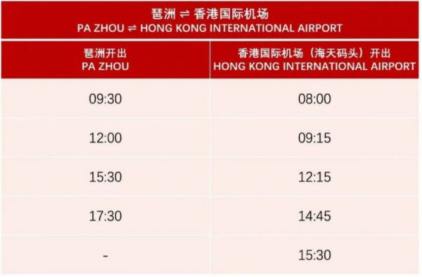 Currently, the routes from Pazhou-Hong Kong-Macao Passenger Ferry Port to Hong Kong include: Pazhou Port-Hong Kong International Airport and Pazhou Port-Hong Kong China Ferry Terminal.