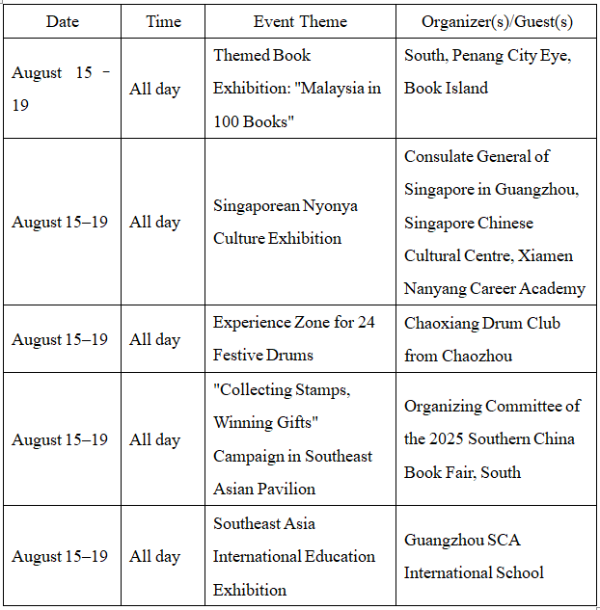 From August 15 to 19, 2025, the Southeast Asian Pavilion at the 2025 Southern China Book Fair will be held in Area B of the China Import and Export Fair Complex (Canton Fair Complex) in Guangzhou.