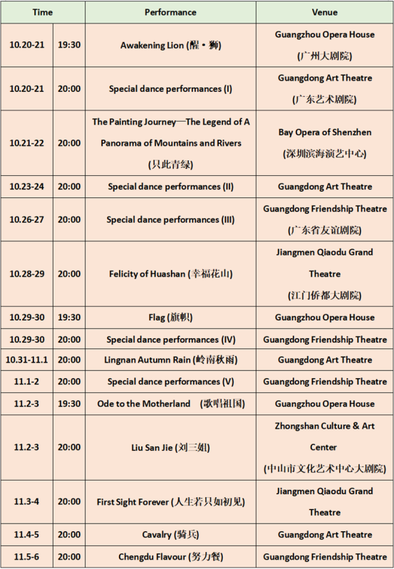 In addition, audiences can watch the exhibition through both offline and online performances. The exhibition will be held in a dozen theaters in Guangzhou, Shenzhen, Zhongshan and Jiangmen, while dance performances will also be livestreamed or screened via some social media platforms such as Kuaishou account called “文艺中国 (pinyin: wen yi zhong guo)", WeChat official account named “中国艺术头条 (pinyin: zhong guo yi shu tou tiao)", and "星海直播 (pinyin: xing hai zhi bo)".