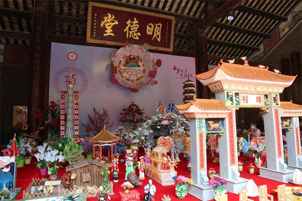 The traditional decorations for the Qiqiao Festival are on display at Mingde Hall in Tianhe district.