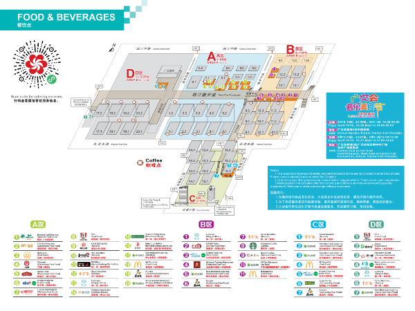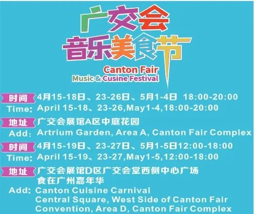 Dining areas are set up across all exhibition zones, offering a variety of cuisines. Check the layout of restaurants or join the Canton Fair Music and Cuisine Festival to enjoy diverse flavors.
