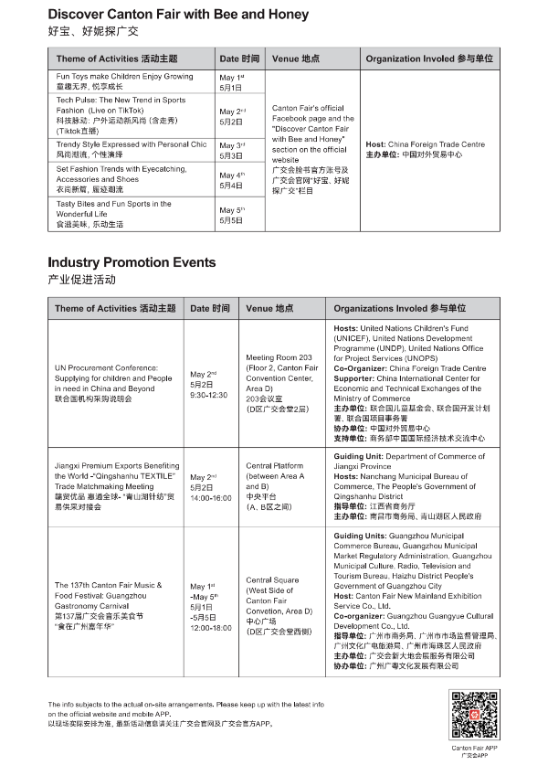 To help buyers better navigate the exhibition halls, the Canton Fair has released the Buyer Guide Phase III, which includes the following information.
