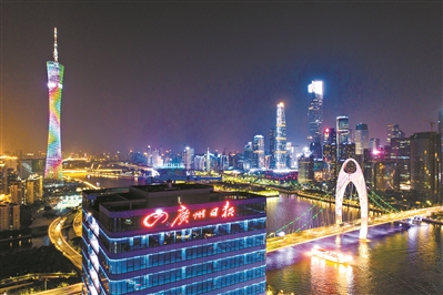 文化品牌地标选取四大文化媒体总部大楼和权属物业,丰富四大文化媒体“线上+线下”文化传播,强化文化品牌宣传力度,打造一台多阵地。广州电视台花果山建筑群引进新技术,广告与夜景照明一体化设计,提升整体夜景效果,打造花果山超高清小镇;广东电视中心、南方报业大楼和广州日报中心等广告与建筑立面一体化设计,提升建筑立面品质。