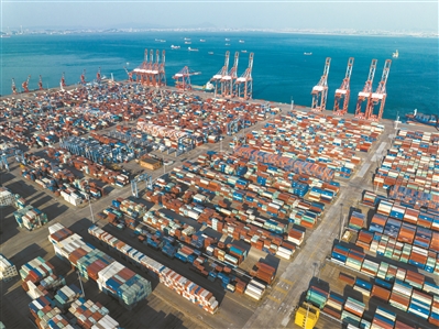 广州将全面提升海陆空铁四大枢纽能级,优化跨境电商商品进出口物流通道。图为广州港南沙港区。