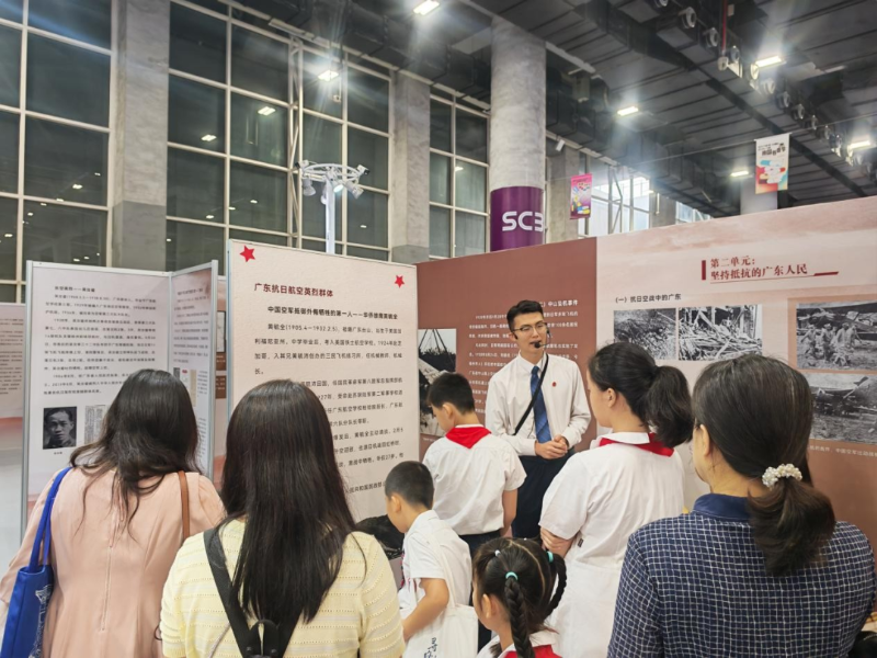 十九路军淞沪抗日阵亡将士陵园管理中心讲解员以饱含深情的讲述,带观众穿越时空,回到硝烟弥漫的抗战岁月,重温了广东籍飞行员捍卫祖国领空的英勇事迹。