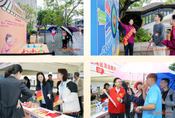 在永庆坊金声广场至粤剧艺术博物馆的沿线区域,市委政法委、市司法局、市规划和自然资源局、市农业农村局、市卫生健康委、民革广州市委员会等普法责任单位以“一单位一展台”形式设置普法宣传展位,集中展示各自行业领域法治建设成果,通过图文解读、普法文创派发、互动游戏等方式,向群众宣传宪法及民生保障、营商环境优化等相关法律法规和政策措施,增强普法的针对性和实效性。