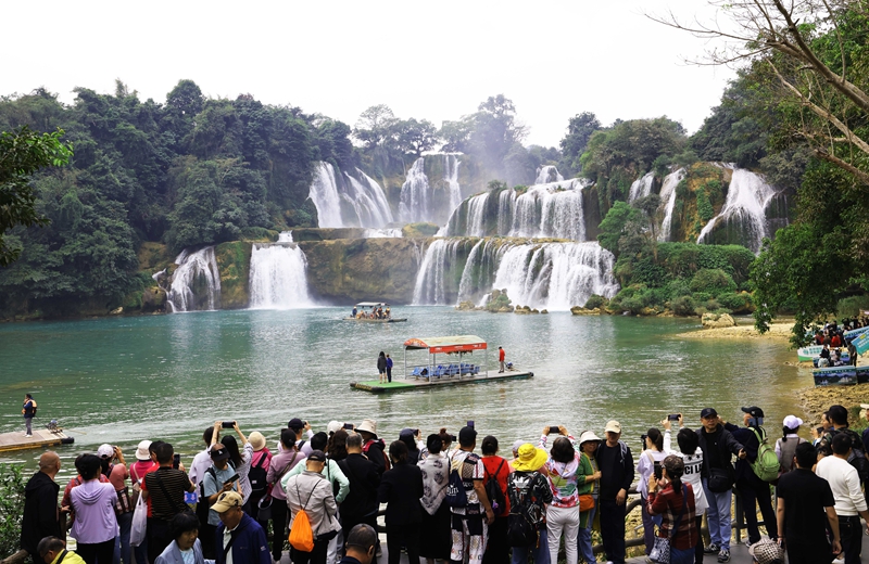 2024年12月5日,游客在中越德天(板约)瀑布跨境旅游合作区中国一侧游览。