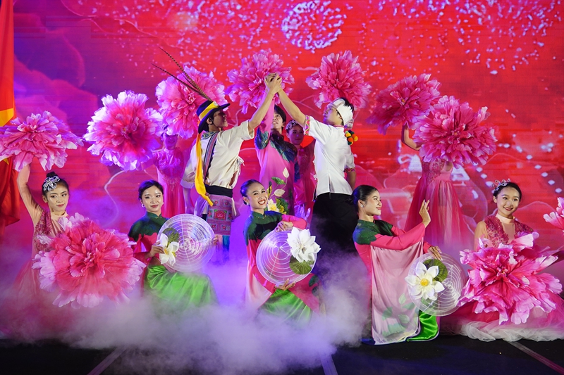 2024年9月16日,在越南胡志明市,艺术家在中越跨国中秋晚会上表演。