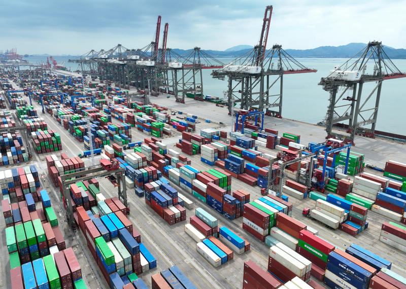 这是2024年10月15日拍摄的中国(福建)自由贸易试验区厦门片区集装箱码头(无人机照片)。