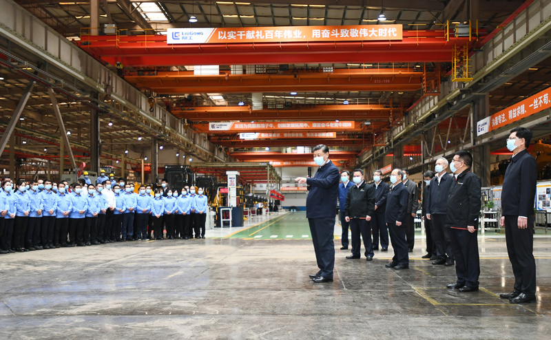 当天下午,习近平来到柳州市考察调研。在广西柳工集团有限公司,习近平先后走进公司展厅、研发实验中心、挖掘机装配厂等,听取企业发展情况介绍,察看主要产品展示,同企业职工和技术研发人员亲切交谈。习近平强调,制造业高质量发展是我国经济高质量发展的重中之重,建设社会主义现代化强国、发展壮大实体经济,都离不开制造业,要在推动产业优化升级上继续下功夫。只有创新才能自强、才能争先,要坚定不移走自主创新道路,把创新发展主动权牢牢掌握在自己手中。要坚持党对国有企业的全面领导,坚持加强党的领导和完善公司治理相统一,在深化企业改革中搞好党的建设,充分发挥党组织在企业改革发展中的领导核心作用。