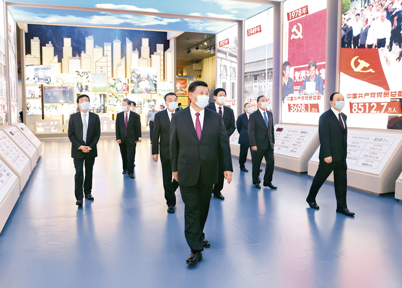 2021年6月18日,党和国家领导人习近平、李克强、栗战书、汪洋、王沪宁、赵乐际、韩正、王岐山等在中国共产党历史展览馆参观“‘不忘初心、牢记使命’中国共产党历史展览”。