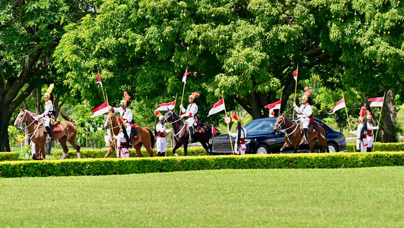 初夏时节的巴西利亚,天朗气清。黎明宫内,绿草如茵,450名威武礼兵整齐列队。在120名龙骑兵护卫下,习近平乘车抵达黎明宫前广场。