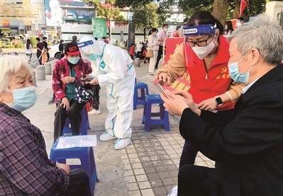 荔湾区站前街党群服务中心检测点设有特别通道,由志愿者为老年人提供协助。