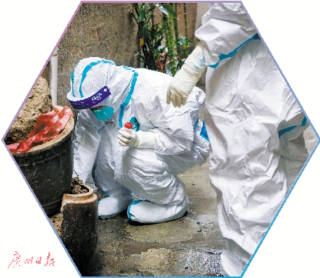 工作人员在封控区内收集环境样本