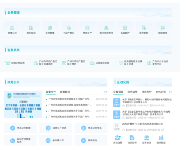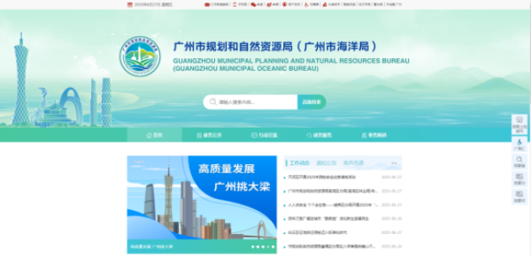 近日,广州市规划和自然资源局(广州市海洋局)新版网站正式上线。新版网站以用户体验为核心,通过视觉效果提升、栏目架构优化、智慧服务升级三大举措,构建起页面更简洁清晰、信息公开更直观精准、服务功能更高效的规划资源信息公开平台和数字窗口。