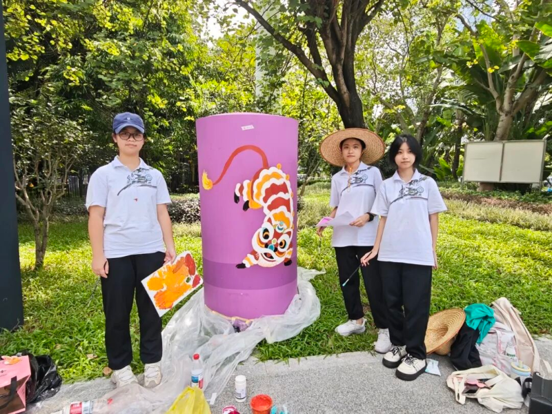 “看到自己笔下的岭南元素与运动激情结合在体育中心的立柱上,成为城市风景的一部分,我感到无比自豪。”高二(2)班学生张嘉顺表示,这次活动不仅将课堂所学的色彩、构图知识应用于真实的城市公共空间,更让他切身感受到艺术服务社会、美化生活的力量。