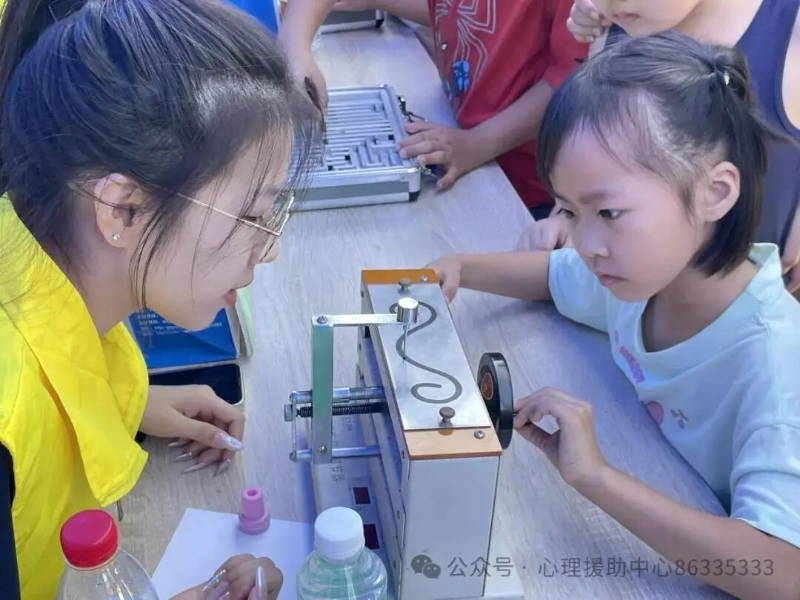 在心理咨询与心理健康科普宣传区,多个互动仪器摊位前围满了好奇的孩子和家长。广州市未成年人中心带来的智能型注意力集中仪、动作稳定仪、逻辑思维仪等探索心理或思维过程的仪器,吸引了众多孩子排队体验。在志愿者的耐心指导下,孩子们通过操作仪器,直观地了解自己的注意力、动作协调能力和逻辑思维能力等特点,在互动中探索心理奥秘。家长也积极参与,亲子互动增多,感情更加深厚。