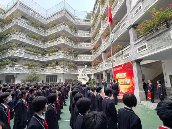 12月1日,在国家宪法日来临之际,广州市越秀区名德实验学校迎来了一场意义非凡的法治教育讲座。市司法局广州新华监狱监狱长王太华,作为该校的法治副校长,为全校700余名师生带来了一堂内涵丰富、思想深刻的法治公开课,让宪法精神在校园中落地生根。课上,他结合青少年成长特点,从历史传承、当代实践、校园责任、国际视野四个维度,系统解读了宪法与法治的深刻内涵。