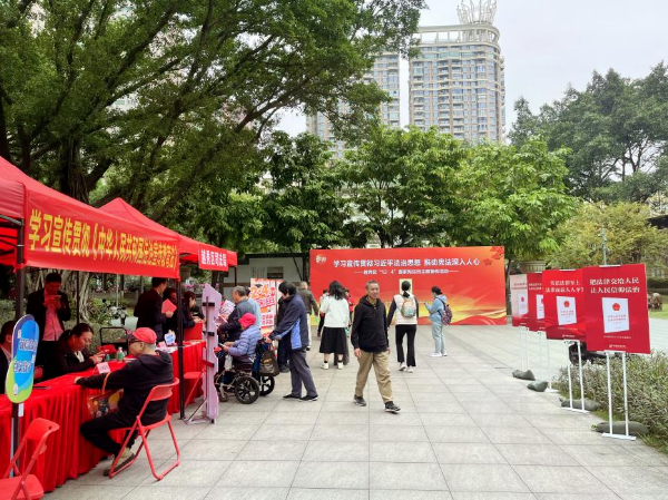 12月4日,2025年越秀区“宪法宣传周”主场活动在该区法治文化主题公园举行。活动紧扣“学习宣传贯彻习近平法治思想,推动宪法深入人心”主题,按照“谁执法谁普法”精神,通过设置普法宣传展位、开展法律及政务咨询、进行互动游戏、法治打卡、派发普法文创等形式,向群众宣传宪法、统计法、密码法、文物保护法等与社会治理及民生领域相关的法律法规,让法治温度触手可及,为推进中国式现代化越秀实践提供法治保障。期间,区司法局围绕“越秀司法蓝·法治润民心”集中开展法治宣传教育法、社区矫正法、广州市矛盾纠纷多元化解条例、“广州法援三十载 守护公平暖民心”等法治宣传活动。区保密局围绕“弘扬宪法精神 ‘密’护新广州”开展面向全民的保密普法活动,传递保密法治理念,筑牢羊城保密防线。活动现场法治氛围浓厚,群众参与热情高涨,取得良好成效。