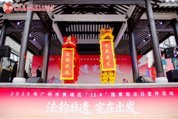 12月4日,黄埔区在广州花厅坊举办2025年“12·4”国家宪法日暨宪法宣传周活动,通过“非遗+法治”的创新形式,为辖区群众打造了一场沉浸式、多元化的法治文化盛宴。现场,非遗传承团队龙狮协会带来的《法治狮舞》率先登场,醒狮踏着激昂鼓点跃动,精准吐出“法韵非遗”“宪在出发”两幅卷轴,将传统非遗技艺与法治精神巧妙融合,瞬间点燃现场热情。与此同时,法治非遗体验区的“法治蛋绘”项目热闹非凡,群众在手绘法治图案的过程中亲近宪法。此外,黄埔区司法局等18家单位还设立普法咨询台,提供免费法律咨询服务,发放宪法、民法典等宣传资料千余份,直接服务群众超600人次,让法治知识“看得见、摸得着、学得会”。