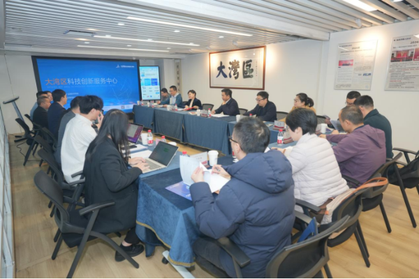 技术经理人作为推动创新链、产业链、资金链、人才链深度融合的关键纽带,既是破解科技成果转化“死亡之谷”的“摆渡人”,更是激活创新要素、培育新质生产力的核心生力军。调研组一行参观了全国首个技术经理人成果转化合伙平台——湾创技术经理人事务所,详细询问技术经理人培育机制、成果转化服务流程等情况;现场观摩产业科技大数据 AI 平台演示,深入了解基于 AI 底座的“线上+线下”供需对接闭环生态运作模式;重点听取湾创中心“成果转化—科技金融—产业落地”闭环业务体系及“概念验证+种子投资”“点燃模式”的建设成效介绍,以及大湾区科学论坛“走进系列”等供需对接活动开展情况。调研组对湾创中心的创新探索和实践成效给予肯定,认为湾创中心构建的“线上+线下”融合服务生态、专业化技术经理人体系、全周期科技金融赋能模式,充分发挥了科技成果转化的枢纽作用,所打造的品牌对接活动为大湾区科创资源整合提供了重要载体,对全省、全市成果转化工作具有示范意义。