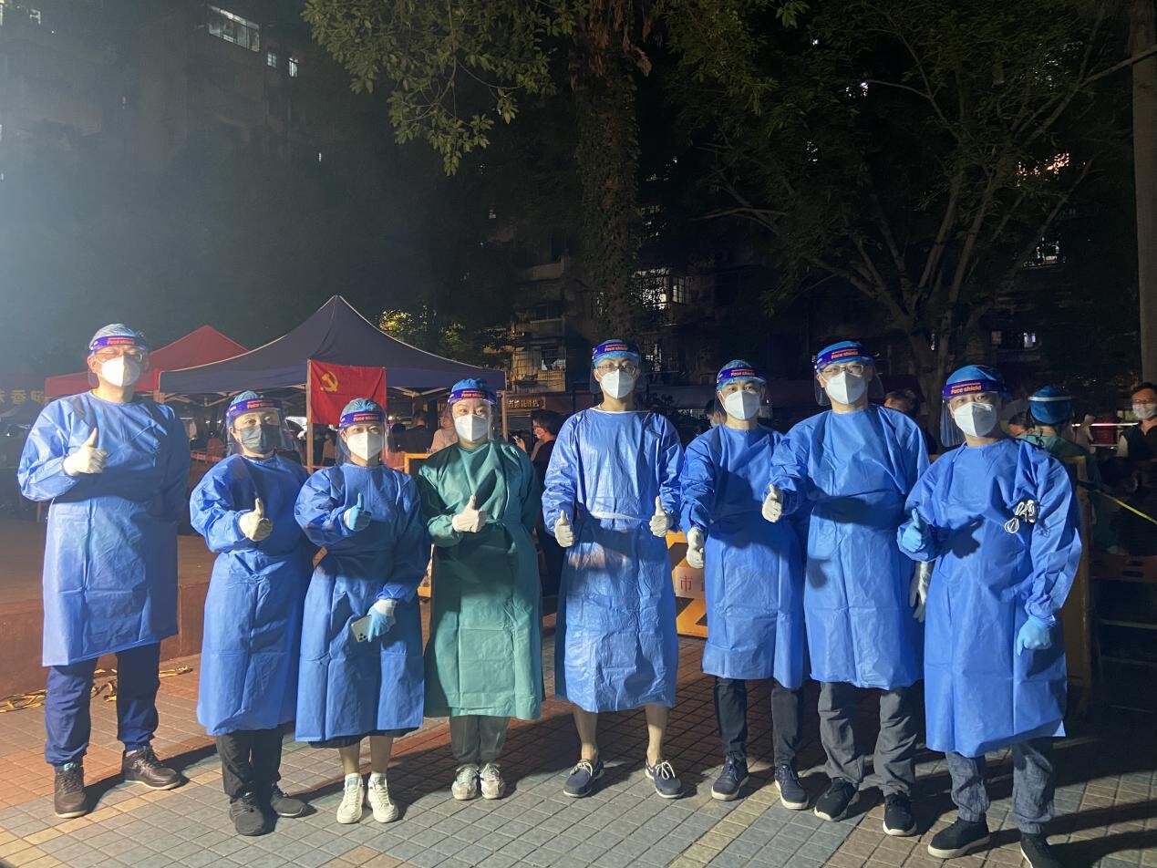 离退休人员服务处党支部党员志愿者与社区工作人员并肩战斗,在其下沉的白云区永平街道共协助社区圆满完成了6轮全员核酸检测工作。