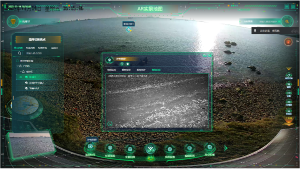 在设备建设方面,采用技术水平领先的监测设备,集成高清可见光、全景成像、红外热成像及智能分析等功能,具备远距离识别、全天候运行和复杂海况适应能力,可在夜间、雾霾及恶劣天气条件下稳定获取清晰画面,显著提升海域感知精度和可靠性。