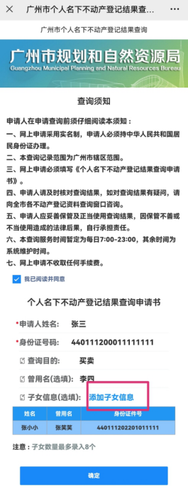 为进一步提升不动产登记信息线上查询便利度,持续提升群众获得感、幸福感,市规划和自然资源局对微信查询个人名下不动产登记结果进行了优化升级,在“广州不动产登记”微信公众号上线了“曾用名”及“未成年人”名下不动产登记结果查询功能。市民可选择输入自己的曾用名和未成年子女信息,在查询结果证明中一并显示自己名下(含曾用名)不动产登记结果信息和未成年子女不动产登记结果信息。
