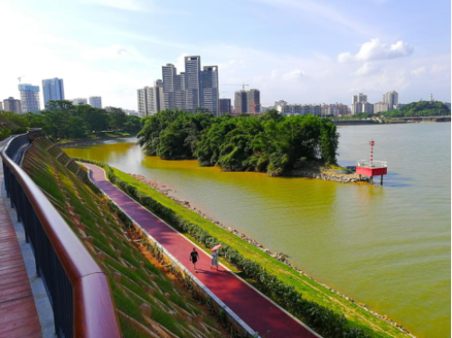 二是打造魅力增江、幸福增城的宜居环境。水是人类相依相偎的重要生活环境,是城市的灵魂,人因水而秀,城因水而灵,更体现人与自然和谐发展理念。增江画廊水利风景区结合地形地势沿河设置休闲漫步道、骑行道,串联亲水平台、观景台、活动广场、休闲草坪,形成系统的游憩网络。沿线配套休闲设施,并设亲子秋千,海洋爬网、互动瓢虫等多个互动畅玩设施,大幅改善了城市人居环境,提升群众幸福感。增城区每年都会依托增江画廊风景区进行“中国水日”科普宣传、景区徒步等活动进行水科学、水文化的全民科普,让群众切身感受到治水对人居环境的改善,进一步推动形成节水、爱水、护水的良好社会风尚。