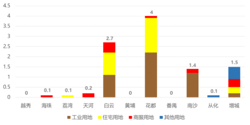 广州市可招商土地资源分区域分用途情况