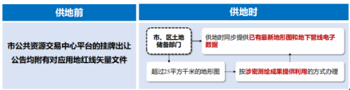供地前规划服务前置。以“用地清单”方式告知待出让土地的政府部门管理要求,主动提供用地红线矢量文件,指导意向企业在土地摘牌前形成稳定的设计方案并提前开设计方案审查服务,将拿地前的“等待期”变成项目推进的“加速期”。