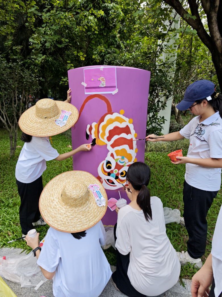 学校师生充分发挥艺术专业教育优势,分工协作、相互配合,紧扣赛事历史、岭南文化、创意运动图标、十五运会元素四大核心要素,把荔枝等岭南水果、醒狮等民俗文化及各类运动动态图形巧妙组合,专注绘制图案。现场处处是热火朝天的创作景象。