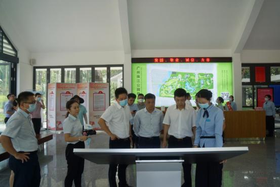 2021年9月17日上午10点,市林业园林局副局长詹宇扬同志陪同温州市综合行政执法局一行十几人来珠江公园进行园区建设、管理等工作情况的考察调研。考察组一行人从北门出发,沿着一级园道由北向南,途径荫生植物区、木兰园、同乐园、桂花园、游客服务中心等地,听取公园自开园以来的公园建设、文化活动、花景打造、亮点提升等情况介绍,对公园的各项建设成果表示肯定。珠江公园领导同志陪同此次调研,与兄弟城市单位密切交流、分享工作经验,对双方的工作都有良好的提升、促进作用。