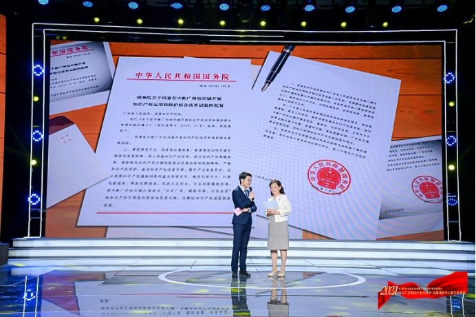 活动现场,还发布了“广州市2020年知识产权保护十大典型案例”。广州市检察院副检察长李学东和广州市知识产权法院副院长黎炽森介绍了案例评选的过程,解释了知识产权案例评选的目的和意义;知识产权保护成果展示环节,广州中院党组成员、副院长吴筱萍,广州海关党委委员、海关总署税收征管局(广州)局长谭武,与线上、线下观众分享了知识产权保护工作经验和成果;创新主体代表分享知识产权创造运用成果环节,来自广汽集团、京信通信公司的代表,分别从外观设计自主创新、生物医药领域、电子通信领域作了知识产权创造运用成果展示。