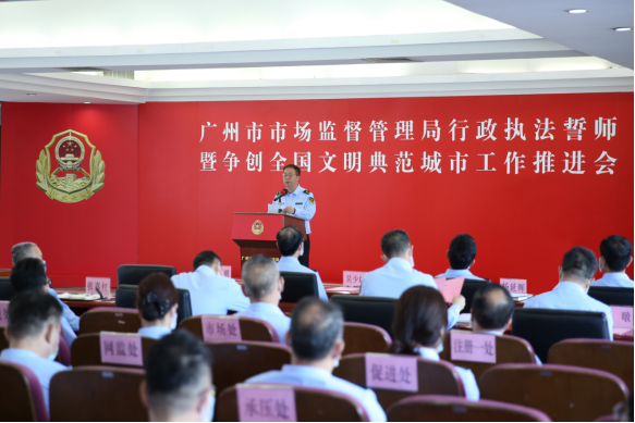 10月18日,市市场监管局举行行政执法誓师暨争创全国文明典范城市工作推进会,以配发执法制式服装、标志和证件为契机,激励全系统加强严格规范公正文明执法,当好市场卫士,以崭新形象争创全国文明典范城市,创建国家食品安全示范城市,护航广州高质量发展。市市场监管局党组书记、局长赵军明领誓并讲话。