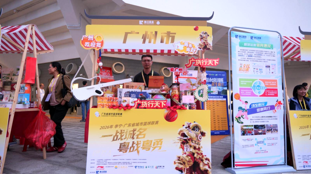 同时,赛场对标顶级篮球赛事标准,在现场部署空中四面屏、升降侧屏、激光投影等专业设备,打造沉浸式观赛体验,场外各地市特色摊位集中展示广货精品,让赛事成为“广货行天下”的重要窗口,完美诠释“办赛就是办城市”的核心理念。