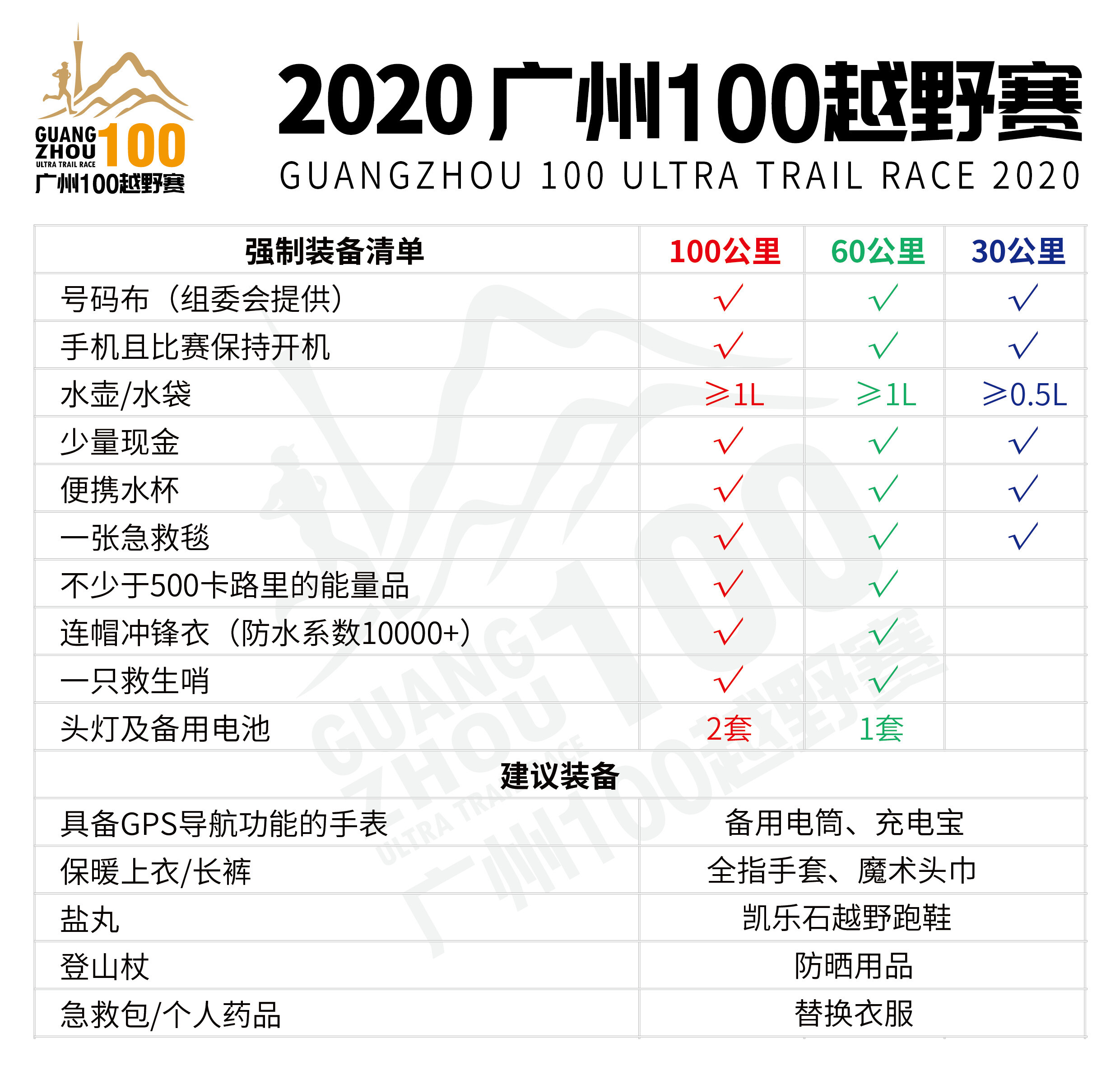 2020“广州100”越野赛为提升选手参赛体验和专业程度,在多个方面进行了升级: