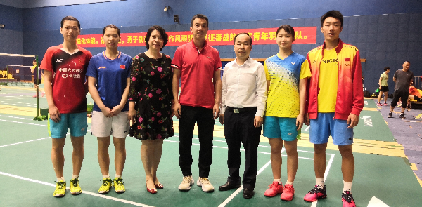 10月10日下午,广州市体育局党组书记、局长欧阳资文带领局分管领导及有关部门负责人,前往正在东莞集训的国家青年羽毛球队看望慰问广州运动员和教练员,并与中国羽毛球协会副主席、秘书长王伟就推进羽毛球项目的普及发展进行交流。