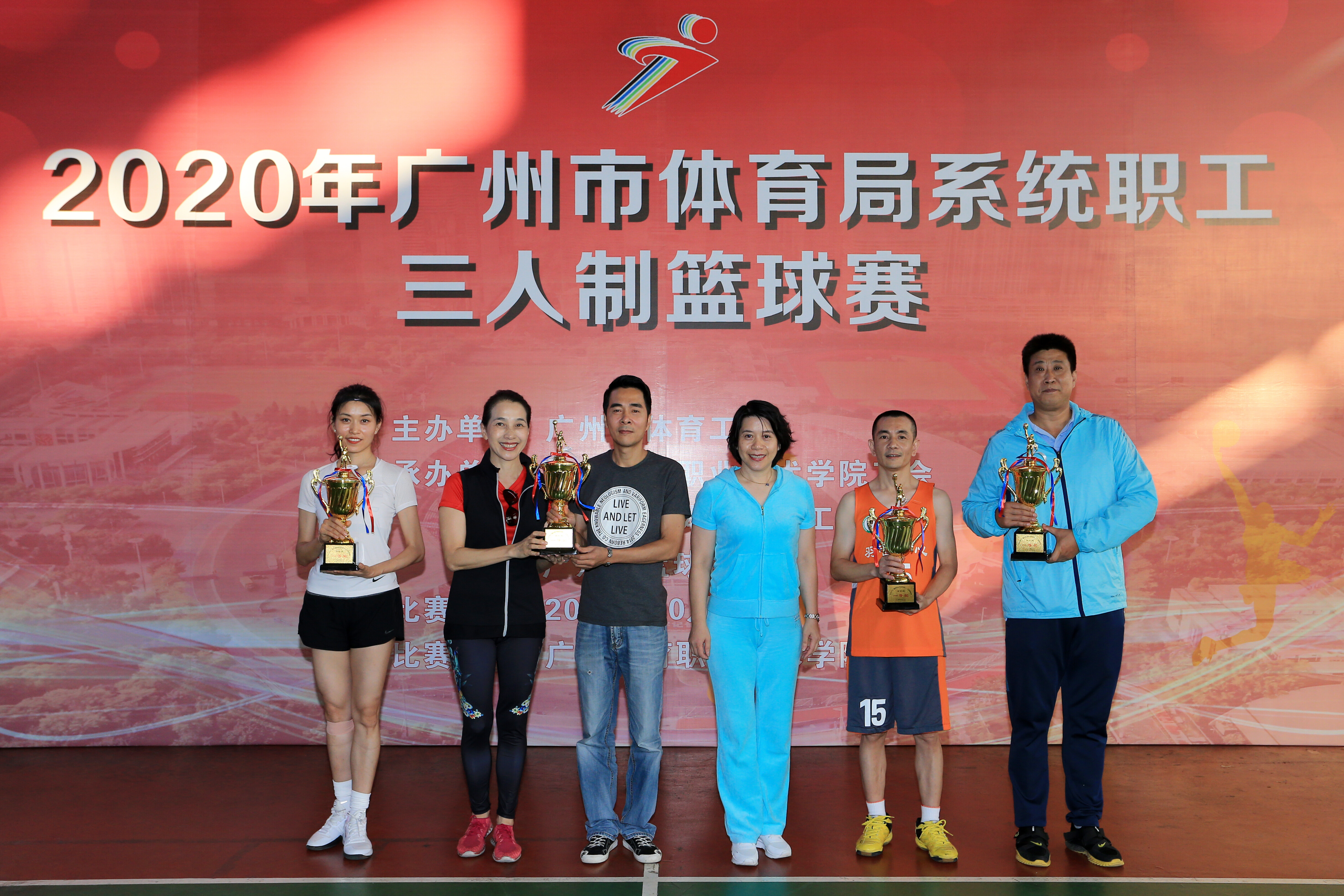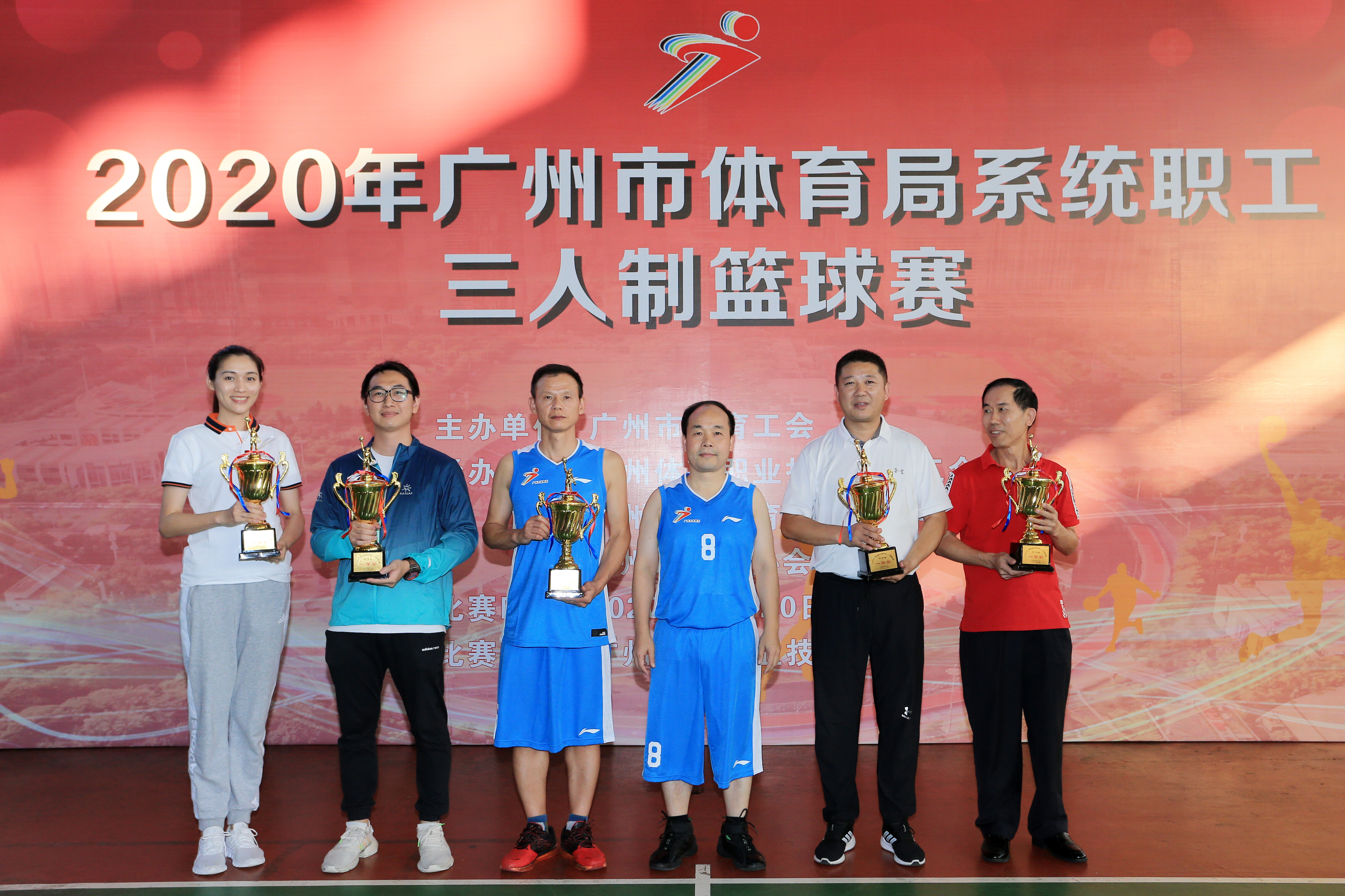 10月20日下午,2020年广州市体育局系统职工三人制篮球赛在广州体育职业技术学院风雨篮球馆举行,广州市体育局党组书记、局长欧阳资文出席并参加比赛,党组副书记、副局长林燕芬,一级调研员吴先浪、勒广义等领导现场观赛指导并为获奖代表队颁奖。